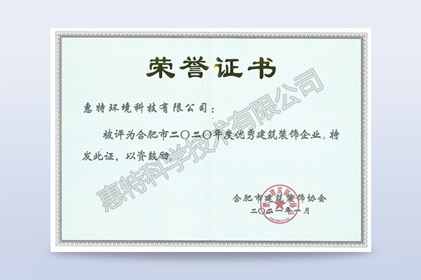 優秀裝飾企業榮譽證書